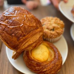 Freshly baked items. Even the juices were fresh. Highly recommend the orange juice and lemonade. Service excellent and fun atmosphere. Loved the background music and seeing the bakers at work. Highly recommend. We got a table quickly but it may have been because it was a Thursday before 11am. It did pick up but the lines seemed to move quick.