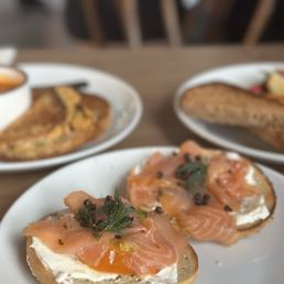 In my decade-plus of living in Miami I'm ashamed to say I only ate in at ZTB once! It's a very popular place that usually has a line out the door. Note for the visitors - if you don't get a chance to dine in, you can also order pickup or purchase some of their products at Whole Foods or other local stores. Decided to treat myself to a solo brekkie on a Thursday morning. No line, no wait. Then again, it's just me. I picked a table next to the bakery and got to watch the bakers at work while sipping my coffee and waiting for my order to arrive. Peaceful. Then comes my nova platter, an enormous serving of cured salmon with cream cheese, capers and dill atop a plain bagel. I'm a bit of a nova connoisseur, and other places tend to overdo it with excess toppings and seasonings. Not this version. I loved how this was simple yet filling. It was devoured. There will likely be a lot of tourists given ZTB's popularity -- there was a hungover yet rowdy group of bachelor party bros seated not too far from me. Parking is available around the restaurant, but make sure to pay! Parking guards were up and early on duty and towed a car while I was there.